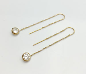 14k Gold Filled U Threader Cable Chain Earrings with 6mm White Cubic Zirconia Stones