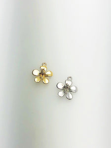 14K Solid Gold Flower Charm w/ Ring, 8.4x9.9mm, Made in USA (L-5)