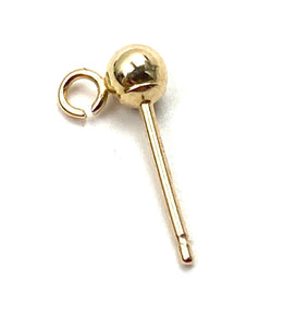 14K 4mm solid yellow gold ball earring w/ open ring, SKU# 064BER93400075