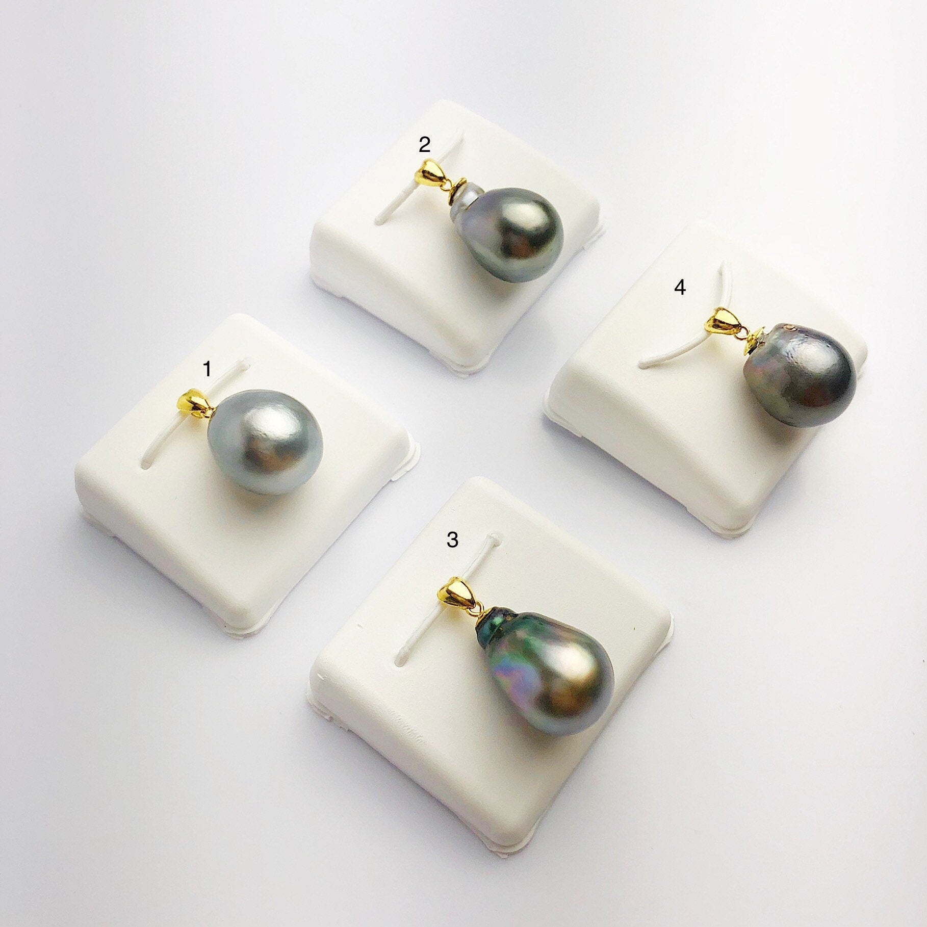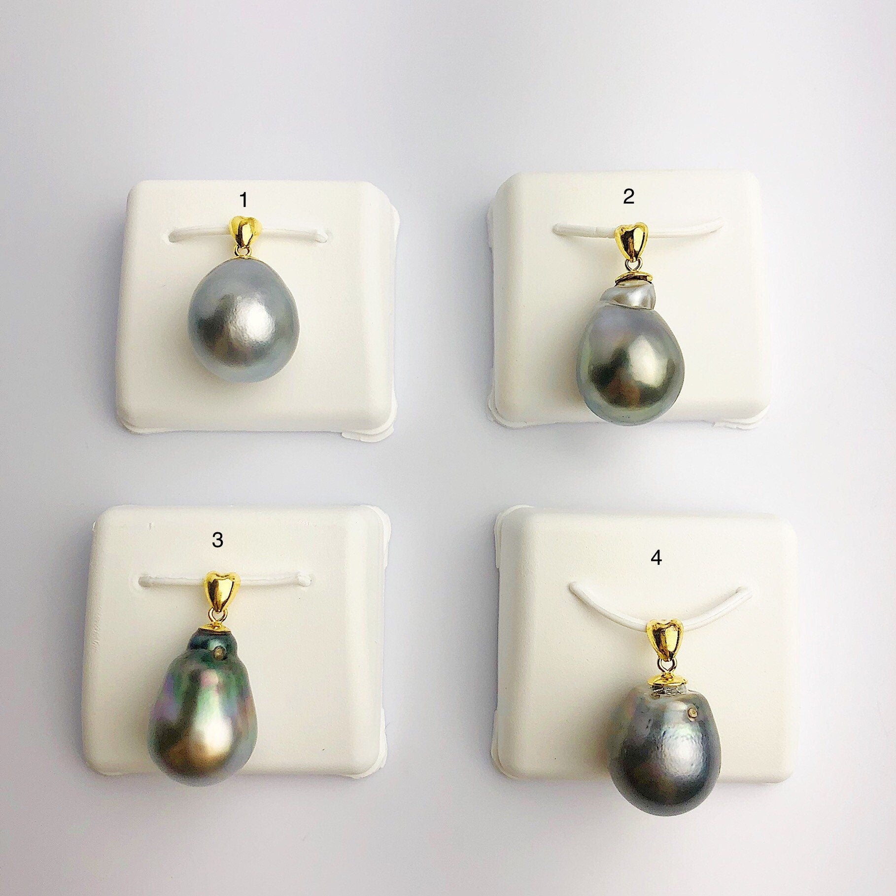 13-14mm Tahitian Pearl Pendants on 18K Gold Plated Sterling Silver (451 No. 1-4)